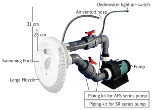 | تصویر | اتصالات | توان لامپ (w) | حجم استخر (m3) | آبدهی (m3/h) | مدل | شرح | ردیف | ||||