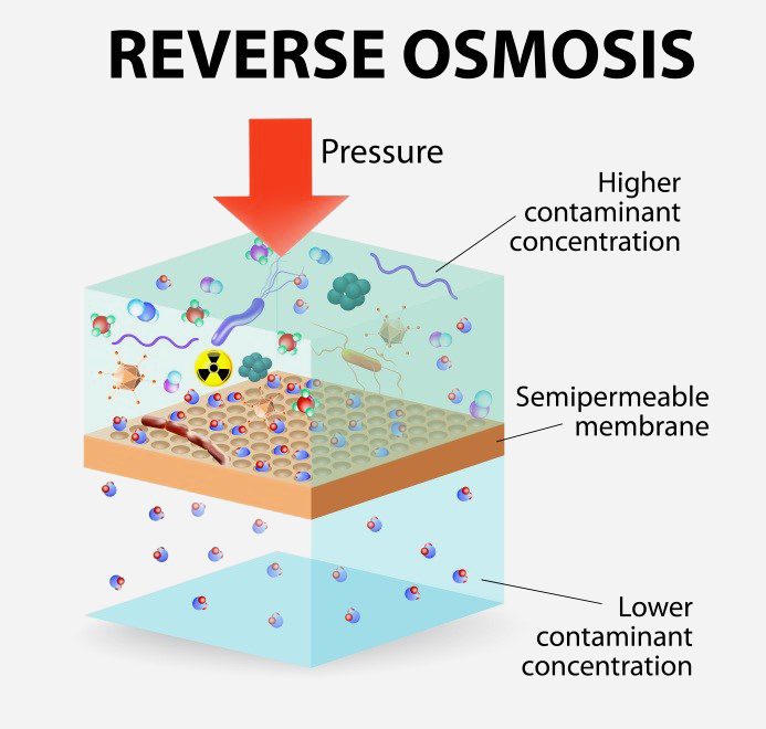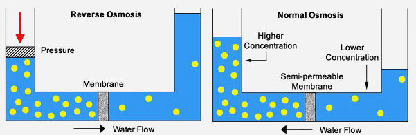 در سيستم اسمز معكوس (آب شيرين كن) آب از غشاء نيمه تراوا (ممبران) عبور كرده و نمك هاي محلول آن حذف مي شود. با استفاده از دستگاه آب شيرين كن ميتوان آبي با املاح اندك و حتي بدون املاح به دست آورد.